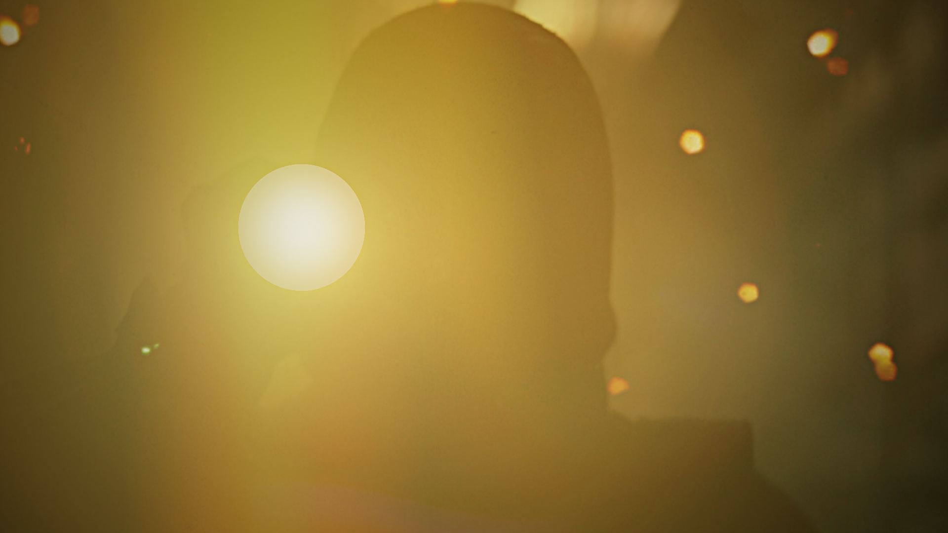 Por corte vemos un largo pasillo. Al final del mismo y a contraluz, se vislumbra una figura a quien no podemos verle el rostro. En su mano sostiene una linterna. Desde el centro de su foco, la linterna emite un perfecto círculo de hermosa luz.
