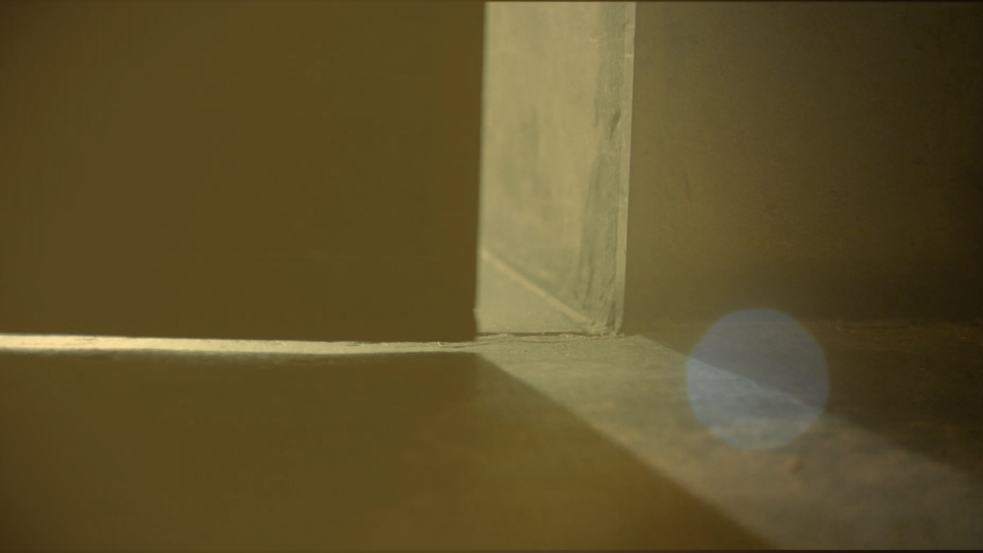 Cortamos a una puerta que se abre mínimamente de manera suave. Nadie está detrás de ella. Un halo de luz amarilla / naranja se filtra e ilumina parte de la habitación. Ale camina hacia la puerta y la termina de abrir con mucha prudencia.
